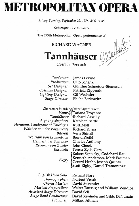 I saw Wagner’s TANNHAUSER for the first time in 1978 in The Met’s classic Otto Schenk/Gunter Schneider-Siemssen production, conducted by James Levine. Here’s what I wrote in my opera diary the morning after: