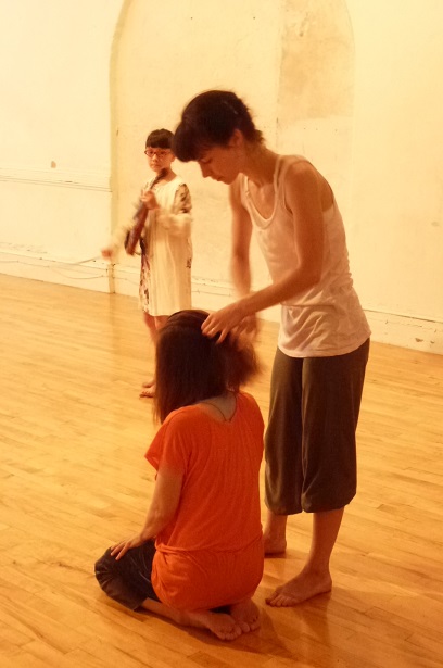 Caroline Brethenoux’s solo Message Send Failure opens in silence, the dancer having difficulty breathing. At last she is able to enunciate: “There was something that I wanted to tell you.” Since she finds difficulty in speaking, she hesitantly begins to express herself in dance, though remaining on the floor; her frustration leads to a silent scream. In the end she rises, suggesting she is ready to pull herself together. But then…she can’t.