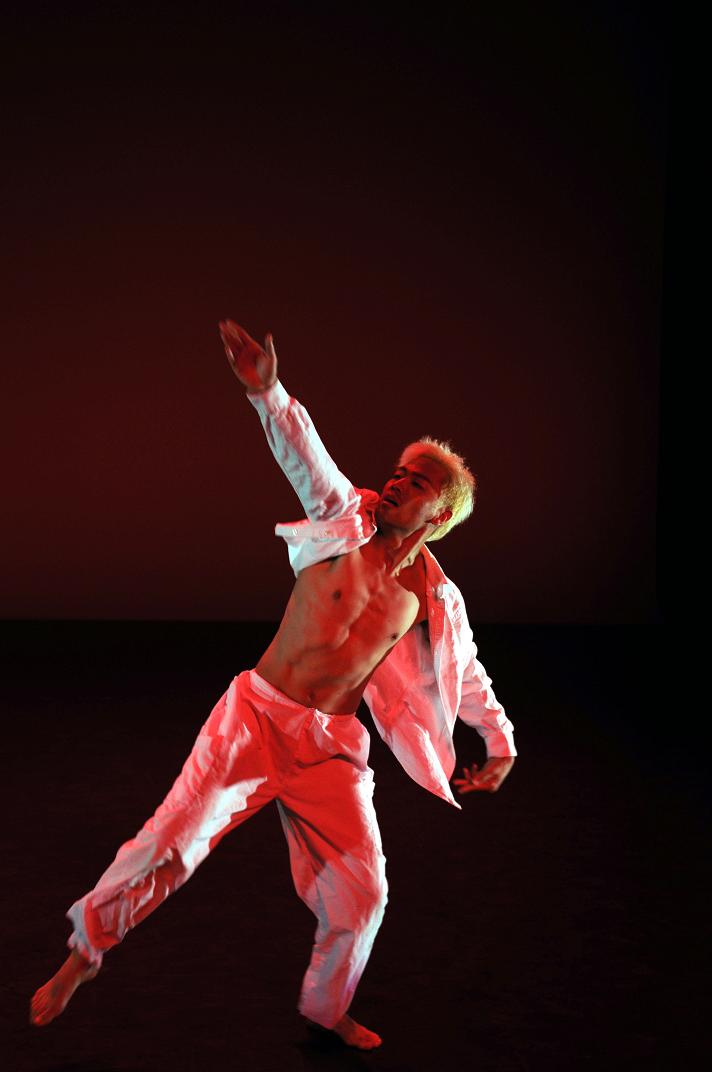 Yuki Ishiguro (above) from Japan called upon a fusion-style that incorporated elements of break-dance, hip-hop and ballet. In his solo Another World, Yuki seemed encased in glass and used his hands with subtle texturing to express his captivity. Sometimes collapsing like a broken marionette, his solo was perhaps the most personal of the evening. Having escaped his glass prison, he seems at the end to be pondering whether he had been safer inside.