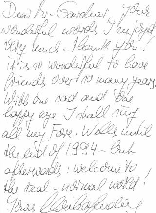 A lovely note I received from Christa Ludwig after I wrote to her on the occasion of her Met farewell in 1993: